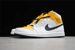 Home>Shoes>Nike>Air Jordan 1 AJ1>Air Jordan 1 Mid>Air Jordan 1 Mid Perforated White University Gold BQ6472-107